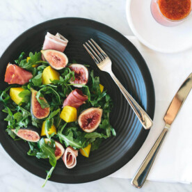 This crazy delicious salad came together as a bunch of leftovers. And it turned out to be the most delicious fig, golden beet and prosciutto salad.