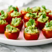 Guacamole stuffed tomatoes are a fun and tasty appetizer that's bursting with fresh flavors and will brighten up any serving platter!