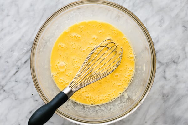In a large bowl, whisk the eggs, yogurt, salt and pepper. Pour the eggs over the half of the vegetables in the pan. Cook on the stove for 2-3 minutes.